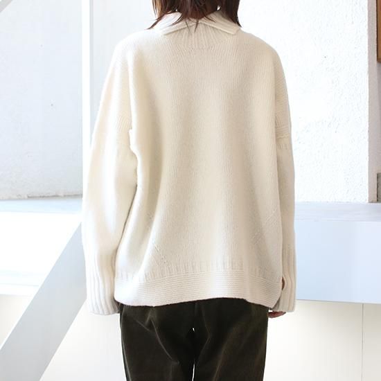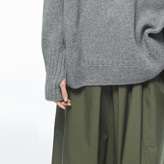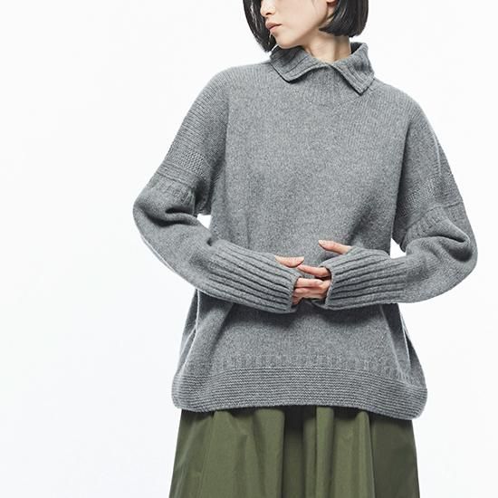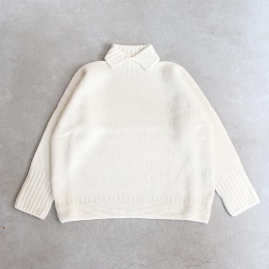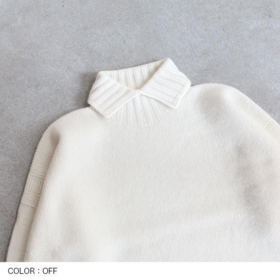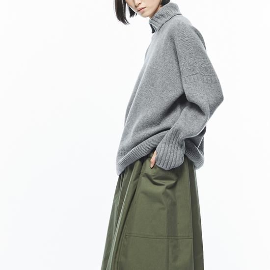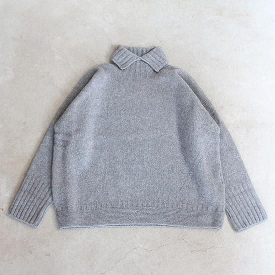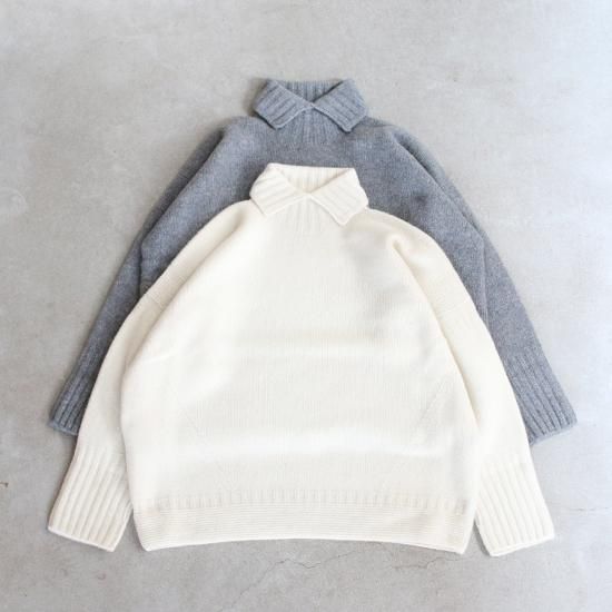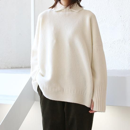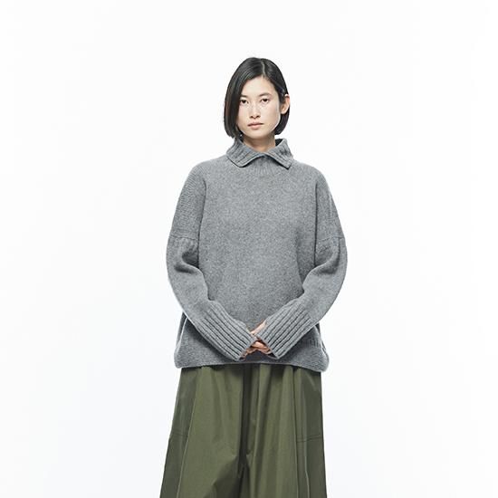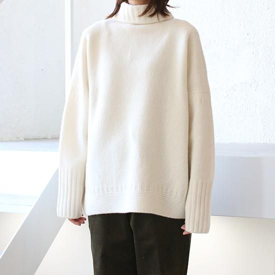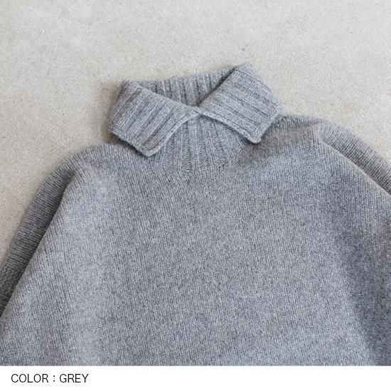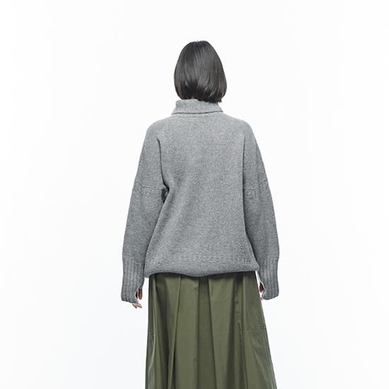 クラシカルなアイテムをモダンにアレンジした変形タートルニット。前後2WAYで着られるので様々なコーディネートを楽しめます。軽くてとても暖かく、ラムウールの中でも細かい毛質の物だけを厳選している為、肌触りが良くソフトな風合いです。シンプルで、大人らしい個性が香る一枚です。