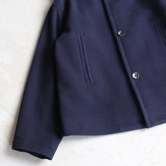 デザインのインスピレーションは、イギリスNAVYのオールドウールダッフルジャケット。ショート&ワイドなシルエットにして、大人の女性にもスタイリングし易いように、上品なタウンユースアウターに仕上げました。シンプルながら両サイドのポケットがデザインポイントに。素材には軽量ながら保温性と耐久性を兼ね備えた冬の定番ウールメルトン使用。綺麗めで毛並みの美しさが特徴です。キュプラ100%の裏地が、滑りの良さと上質感を感じる着心地に。