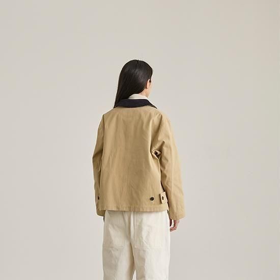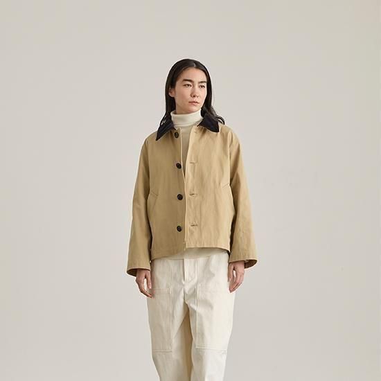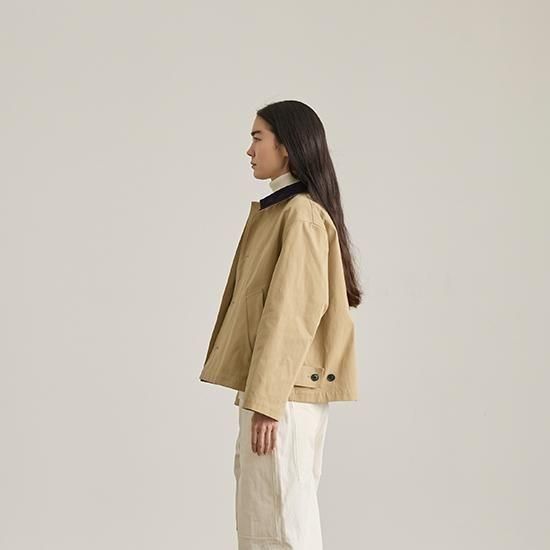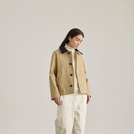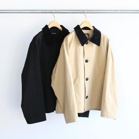 キュプラ100%の地が、滑りの良さと上質感を感じる着心地のユーティリティージャケット。デザインはシンプルながらオーバーサイズになり過ぎないサイズ感やコーデュロイ素材で衿切替など細部にこだわったスタンダードな一枚です。
