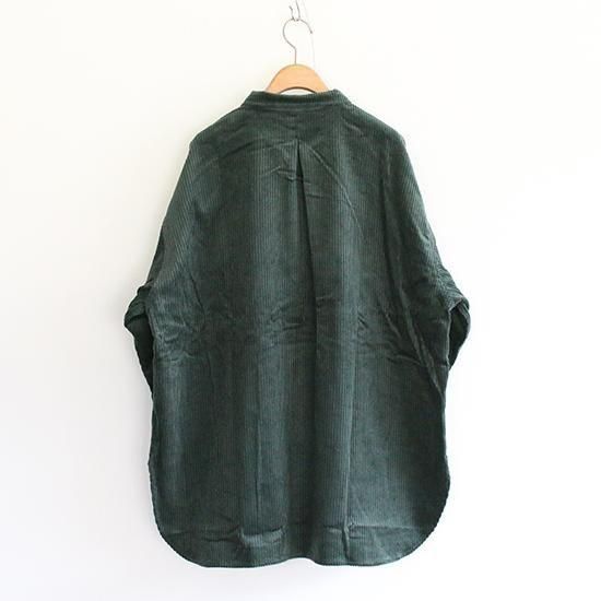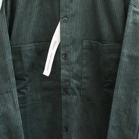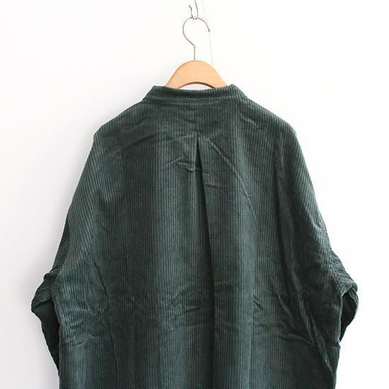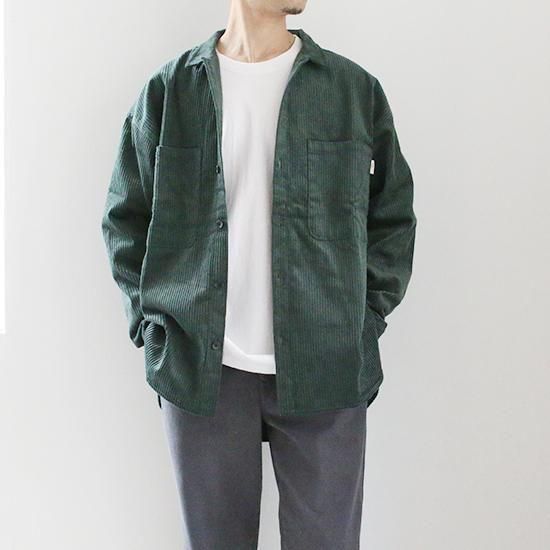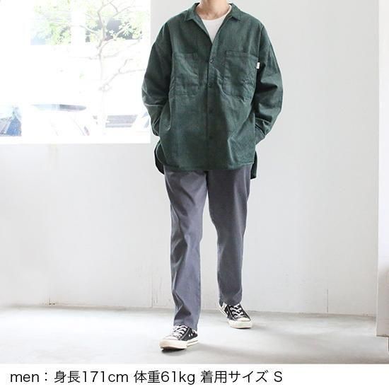 ブリティッシュワークシャツをベースに、小さめの襟、ドロップショルダー、ややロング丈のシャツテールなど、シルエットバランスに拘った一着。男性にはルーズフィット、女性にはオーバーサイズで着用できるサイズ感です。光沢感のあるクラッシックなムード漂う、コットン100%のコーデュロイ素材を使用。程よい厚みのある生地感なので、軽めの羽織りとしても活躍します。