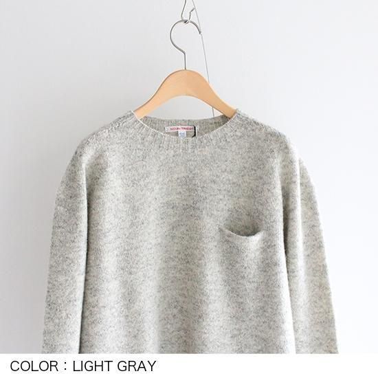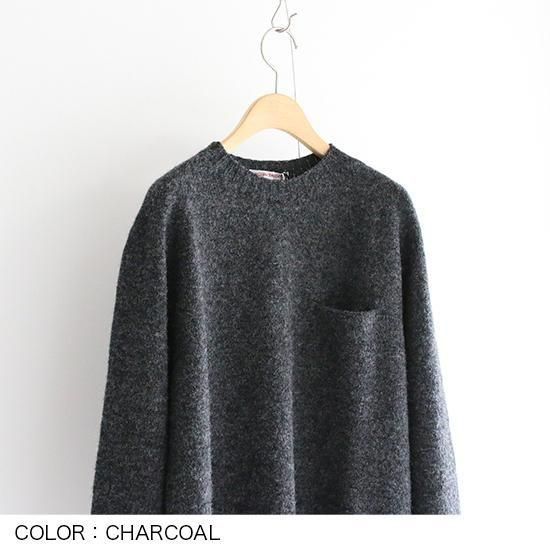 ウール本来の粗野感が特徴のシェットランドウール100%を使用。縫製箇所を極力省いたホールガーメント仕様で仕上げられたN.O.UN定番ポケット付きセーター。