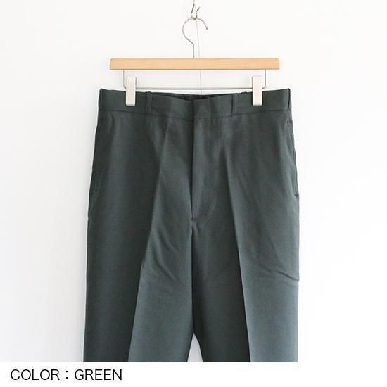 独特なARMY GREEN44という色目を使用したウールパンツ。MILITARY GREENとはまた違った印象の1本。都会的な印象の色でドレスパンツとして着用できるアイテムです。