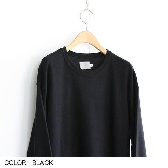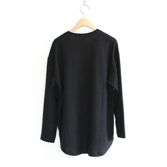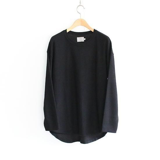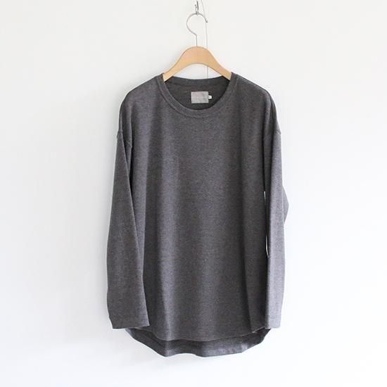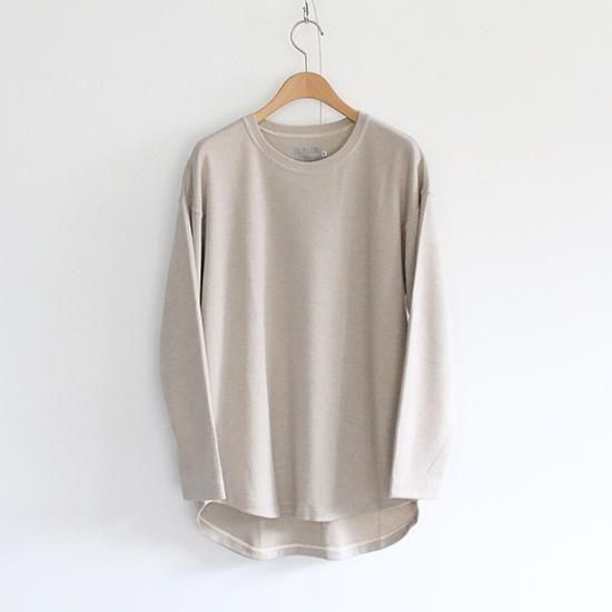 三菱レイヨン(株)の機能素材プレミアウォーム®︎を用いたロングスリーブTシャツ。肌触りの優れたマイクロ抗ピルアクリルを用いたストレッチジャージーは湿気や汗を熱に変えて保温する機能を持ち、温かさは保ちつつも余分な湿気は逃すので、サラッとした快適さが保たれます。また表面を起毛することで柔らかな肌触りに仕上げています。インナー用途がメインではありますが、タイトフィットにはしていないので一枚でも着用可能。数シーズンマイナーチェンジを繰り返しながらも継続展開されているCURLY&Co.の定番アイテム。今シーズンは袖口幅を若干狭くしています。