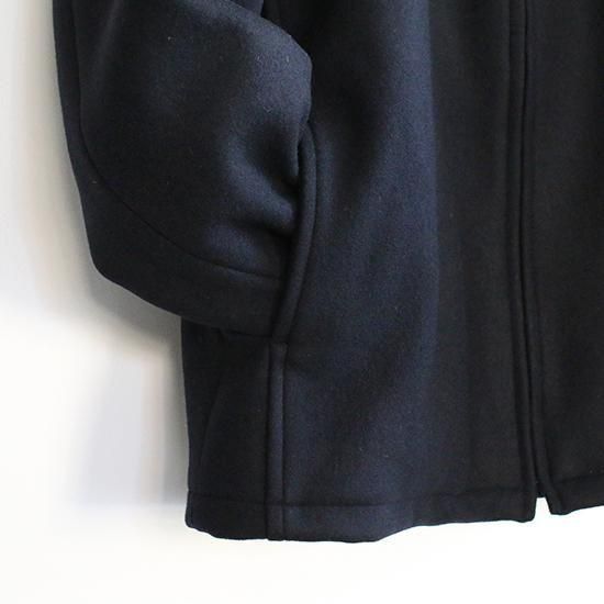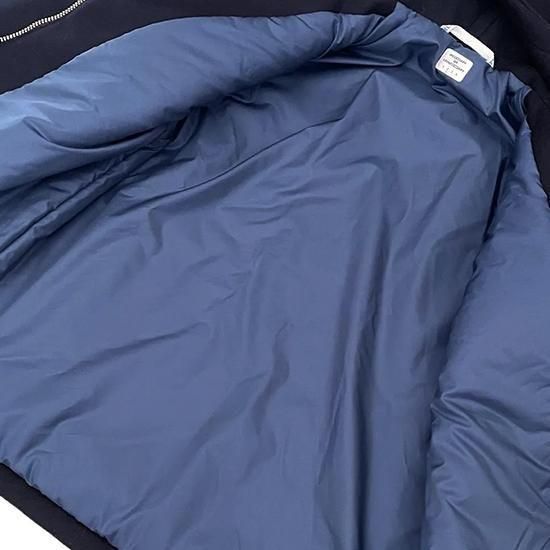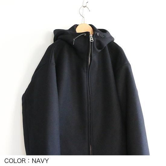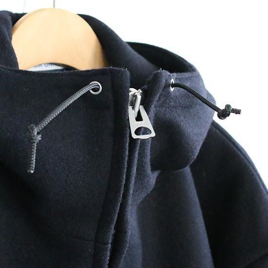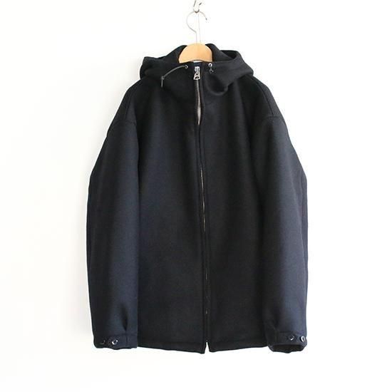 表地にウール、裏地にナイロンを使用した、中綿入りフード付きジャンパー。穿き古したパンツと組み合わせた、減り張りのある着こなしがおすすめ。